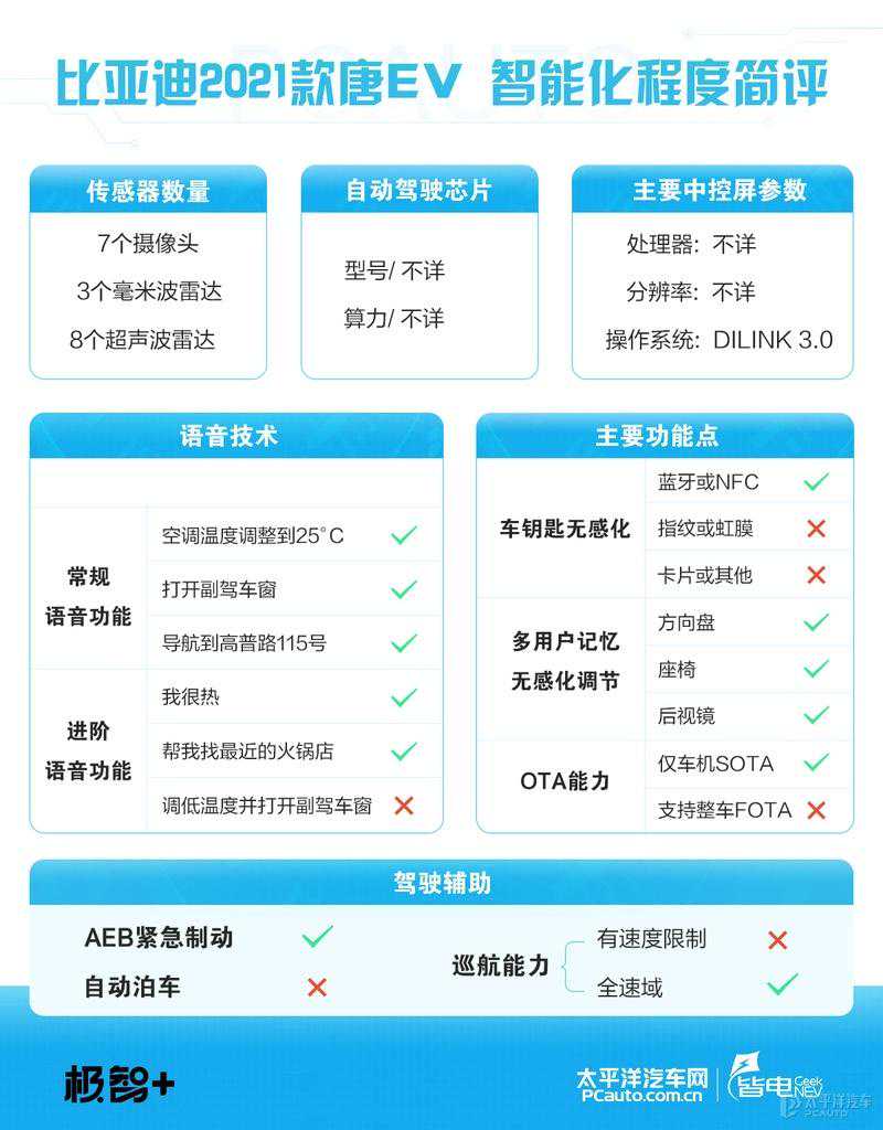 【太平洋汽车网评测频道】一台重量超过2吨的SUV,它的0-100km/h加速时间4.4秒,百公里制动距离在37米内,而且售价在30万元左右,你能想到什么车?没错就是它,比亚迪唐EV,这次试驾的是2021款唐EV(下文简称:新款唐EV),它可以在4.4秒内从静止加速到100km/h,那除了延续老款车型强大的加速能力以外,2021款唐EV还有哪些升级的地方?