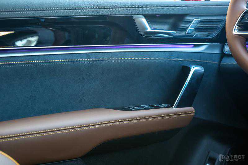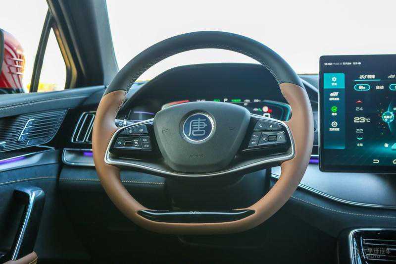 新款唐EV采用了全新设计的双幅式方向盘,而且还用上了双色搭配以及真皮包裹,看起来摸起来都显得足够高级。至于其它细节部分,车内采用了大量麂皮包裹,搭配精致的双缝线,大大提升了车内的豪华感。