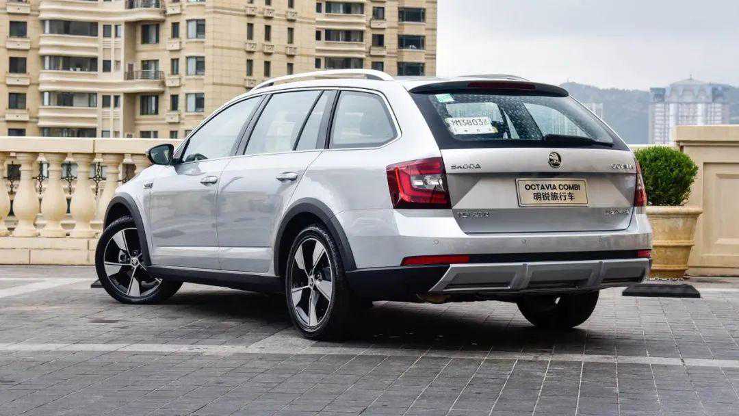 而在车身造型上,明锐旅行版使用跨界设计,在轮眉、前后包围、侧裙位置增加了黑色包边,并且车身高度相比掀背版增加了49mm。同时,车辆较大的车窗和C柱侧窗,都是非常传统的欧式旅行车造型,看起来十分端庄。