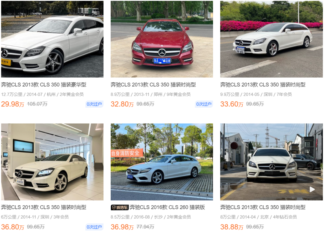 在车型选择上,我们比较推荐搭载3.5L自吸的2013款CLS350猎装版,因为这个版本动力很好,0-100km/h加速只要6.4秒,而且综合油耗也就10升左右,并不是很费油。视车况不同,CLS350猎装版价格在30-39万之间,相比新车时落地100万的价格要便宜了不少。而搭载2.0T发动机的2016款CLS260,由于车龄更短一些,价格也并不便宜,要37万左右,就不太推荐了。
