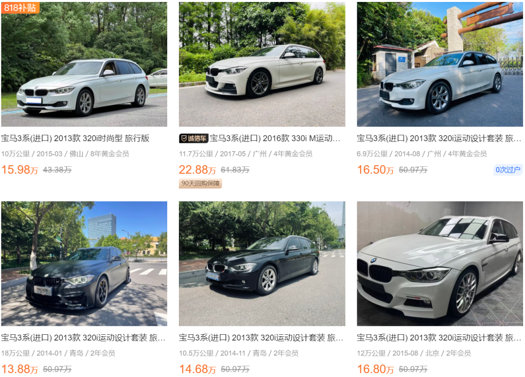 在二手市场上,3系旅行版的车源并不多。如果你对动力、车龄要求不是特别高,那么我们推荐买2013款320i旅行版,目前价格在13-17万之间。要是想买动力更好的328i、330i,那价格就涨到了22万左右,性价比并不是很高。