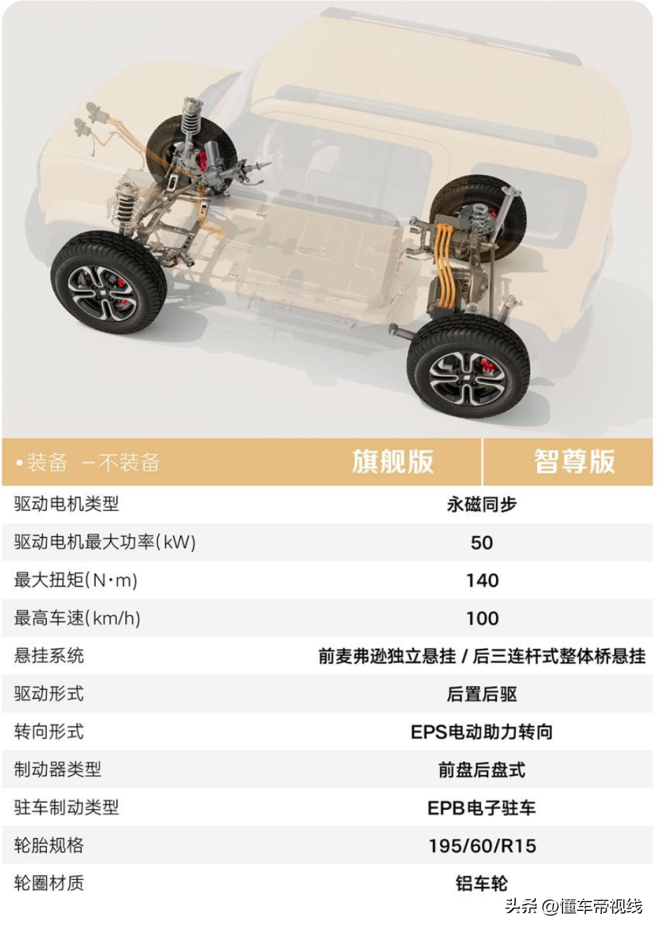 动力方面,宝骏悦也三门版采用后置后驱的驱动形式,搭载永磁同步电机,最大功率为50千瓦,峰值扭矩140牛·米,动力参数与此前上市的五菱Airev晴空相同。宝骏悦也搭载磷酸铁锂电池组,纯电续航里程可达到303公里。