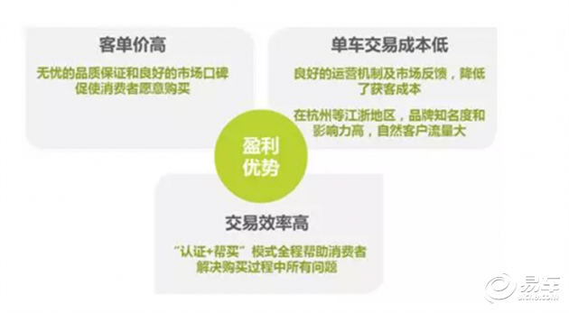 这种O2O连锁模式能够打消消费者买车时的顾虑,提供丰富的车源和真正意义上的线上+线下服务,还能将品牌和服务标准化,更能从低频交易转变为高频服务的过程中挖掘更多的赢利点,并团结车商力量得以迅速发展。
