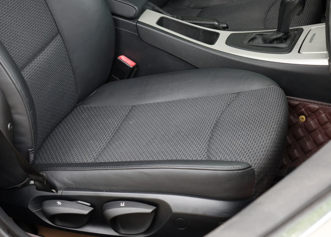 E90版本的3系座椅,要么是全皮革(国内的自动挡车型基本都是皮革,根据配置高低,皮革有区别),要么是全织物(主要在手动挡车型上,比较稀少)。