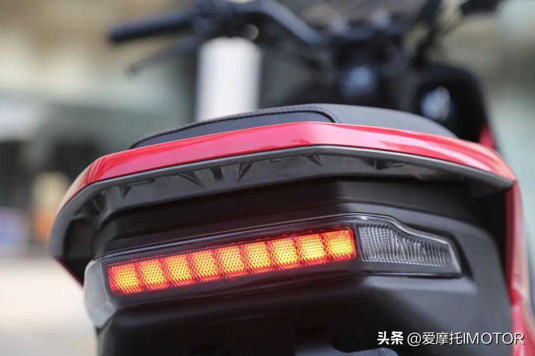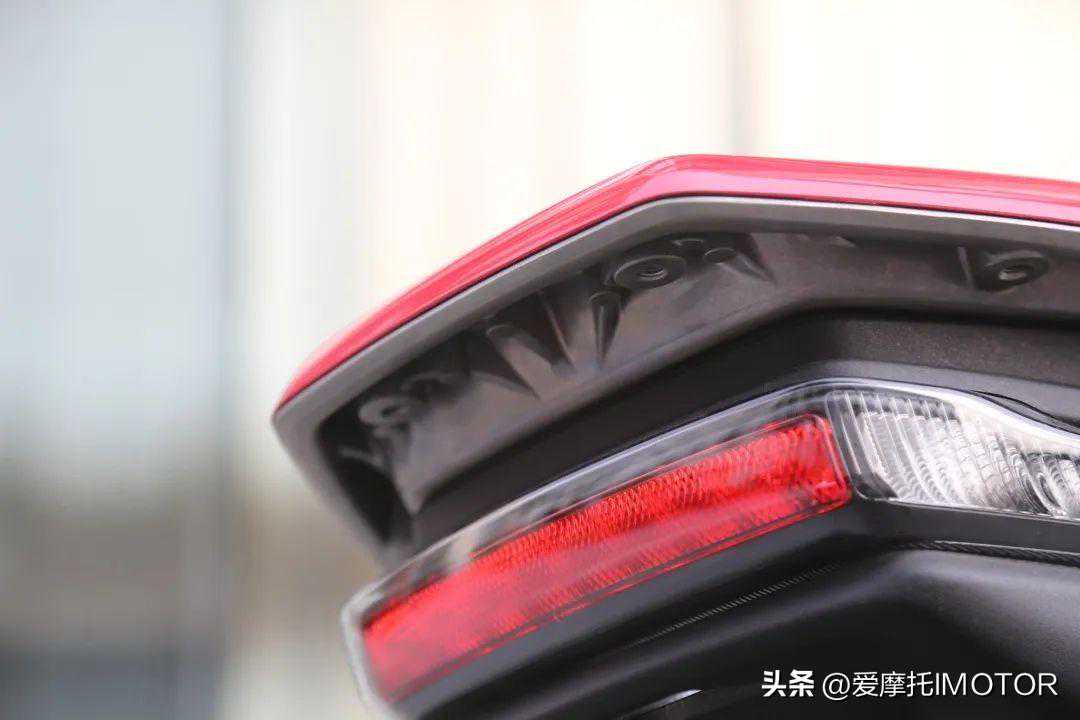▲U-GOGT上扬的尾部呈现了更为突出的运动感和设计感,而隐藏式后扶手则很好地与后车壳融合到一起,即有功能性又不破坏整体的设计美学效果,而且U-GOGT通过亮漆和磨砂漆面的内外拼接混搭,营现了很强的层次感,U-GOGT的漆水保持了五羊-本田作为合资品牌的一贯高标准,漆水饱满,接缝匀称,没有对比就没有伤害,在小区里停车的时候,其它电动车放在一起与它有明显差距感。