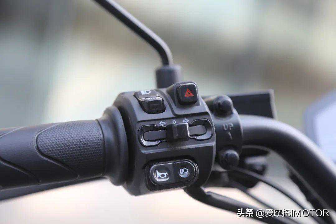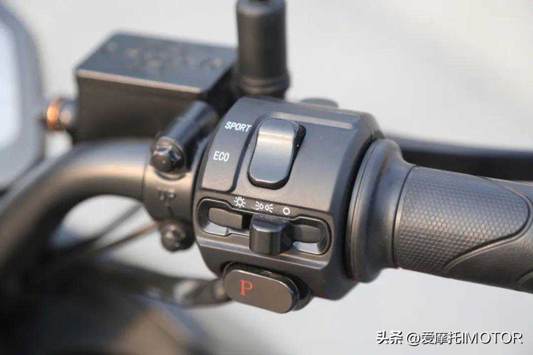 ▲车把总成的布局要也使用了新的模块,像双闪开关、经济/运动模式切换开关、P档解锁开关这类常规功能按键都有,但是我觉得比较特别的是它设计了超车灯按键,这是一般电动车上比较少会有的,在喇叭按键的右边,这也侧面反映了五羊-本田对安全性的重视,左右总成摁键无论是质感还是手感都很出色,不像有的电动车为了在配套上省钱,摁键表面甚至不做漆,塑料感太强。