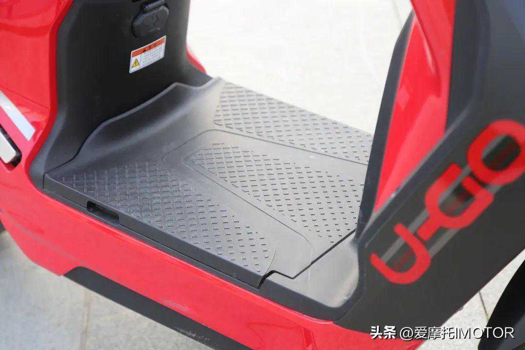 ▲其实U-GOGT空间表现最突出的就是这块超大的平踏板,不仅在骑行中给了驾驶员舒适的腿部放置空间,而且它的实用性很高,日常生活中也能携带一些大件物体,踏板的前后间距达到了350mm,它也刚好可以容纳一个长宽高400mm/330mm/300mm的头盔盒,这里大家可以做个参考。