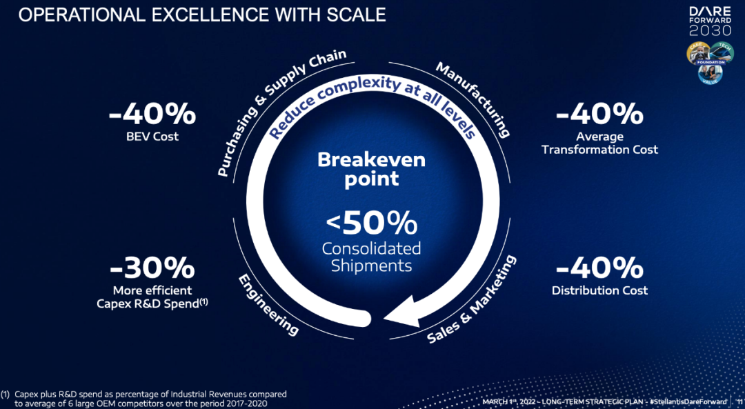效率。效率被首次认定为PSA的DNA,其核心依然是降低生产和运营成本。其中包括:降低单车薪酬/收益比值、降低市场行销/消费转化率比值、减少工厂20%的结构性成本、调整以及更新降本措施、缩减场所费用。