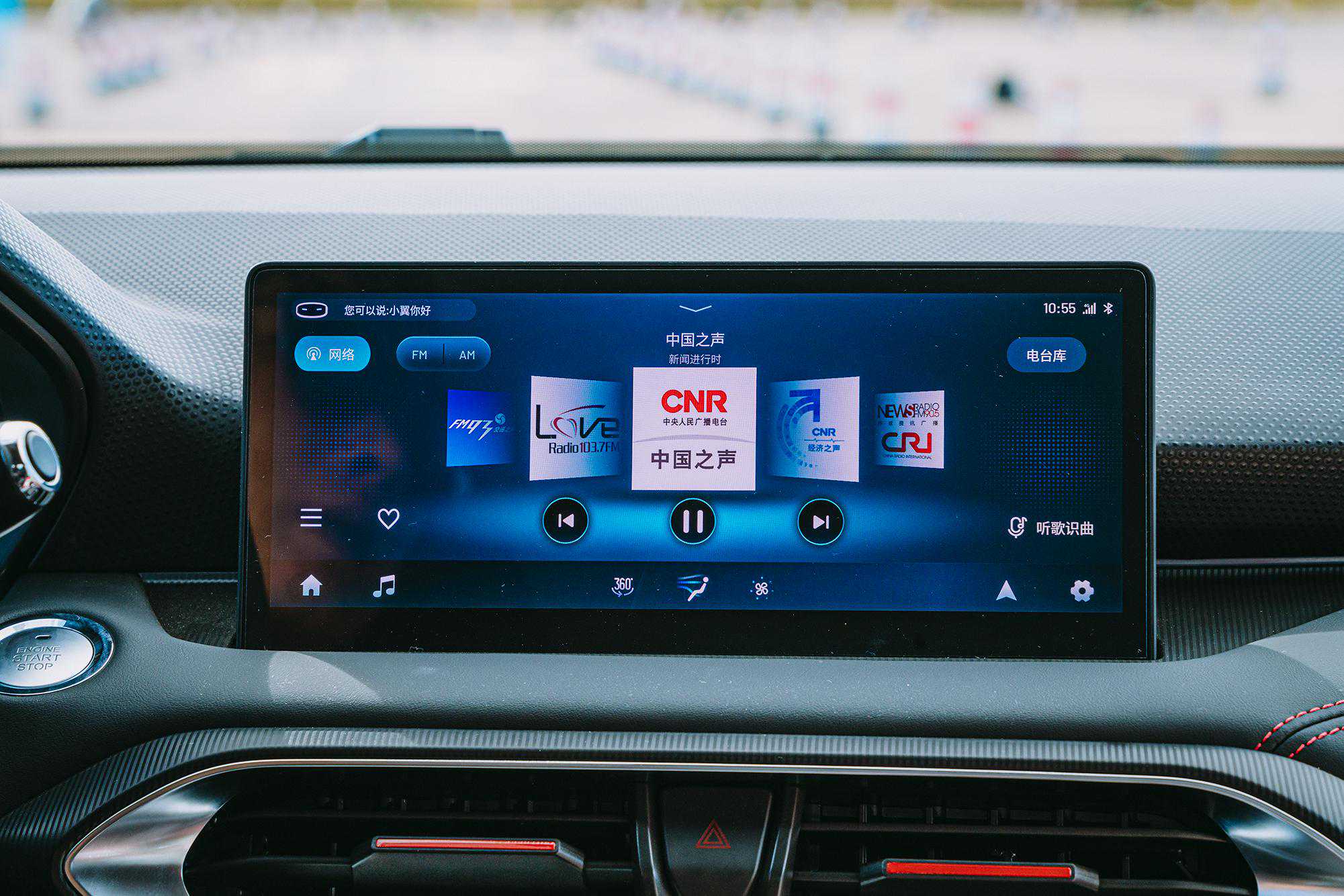 进入车内,你会发现轩度的内饰更不会让你联想到艾瑞泽7。中控区域向主驾一侧倾斜,7英寸液晶仪表以及10.25英寸悬浮式中控屏,都让轩度看起来更像是一台属于2021年的产品,同时黑红的内饰及座椅配色,加上从中控台、门板上的缝线到空调出风口的红色点缀,都在强调轩度极力营造的运动感。