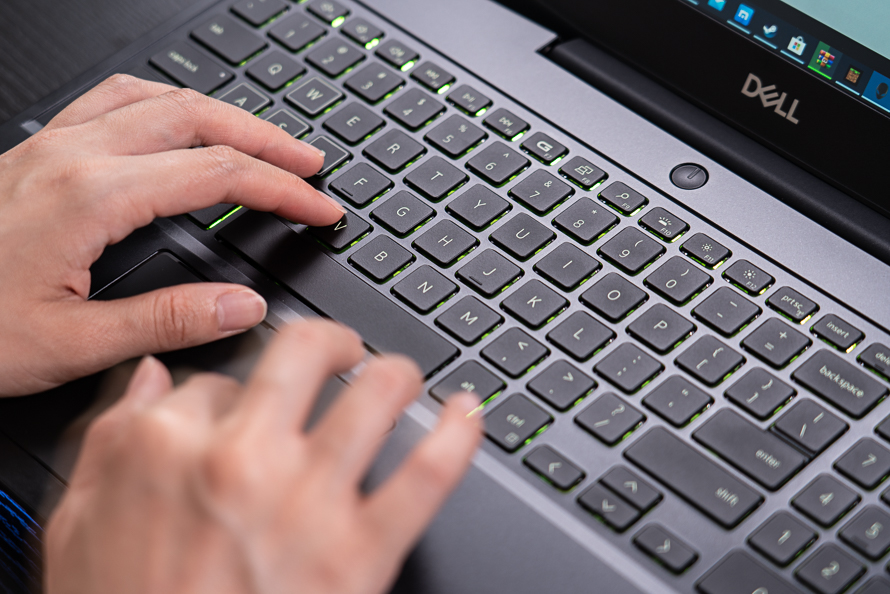 笔记本的C面采用的是全尺寸的背光键盘,无论是键盘布局还是键位设计都和去年的版本相差不大,当然2020款的笔记本触控板尺寸有着比较大的提升,操作起来还是很方便的。同时为了让整个笔记本更加地炫目,戴尔G55500笔记本在CD面的中框处加入了一个横条LED灯带,显得更加酷炫,同时在软件上也采用了外星人的灯效控制系统,似乎戴尔想把G系列产品打造成融合了外星人血液的产品。