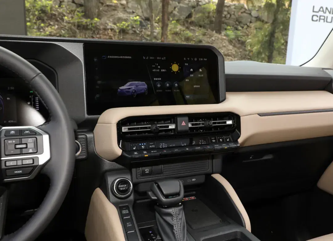 液晶仪表、中控大屏、拼色内饰,以及全新造型的方向盘、换挡杆、空调出风口、车门拉手等设计,让新一代普拉多真正有了高端车型的氛围,也跟上了当前的时代潮流。