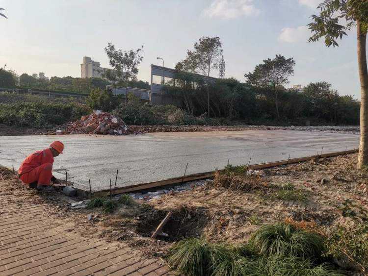 目前的水泥路是用作摆放钢筋等施工材料的用途