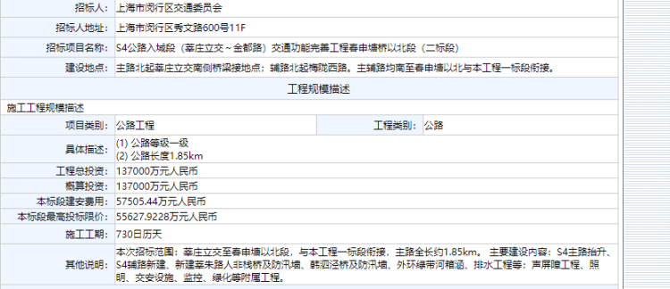 工程范围内以下桥梁需拆除:莘朱路跨S4跨线桥、春申路跨线桥、韩泗泾地面桥、春申塘地面桥、银都路跨S4人非天桥、金都路路跨线桥路口南侧以北段。