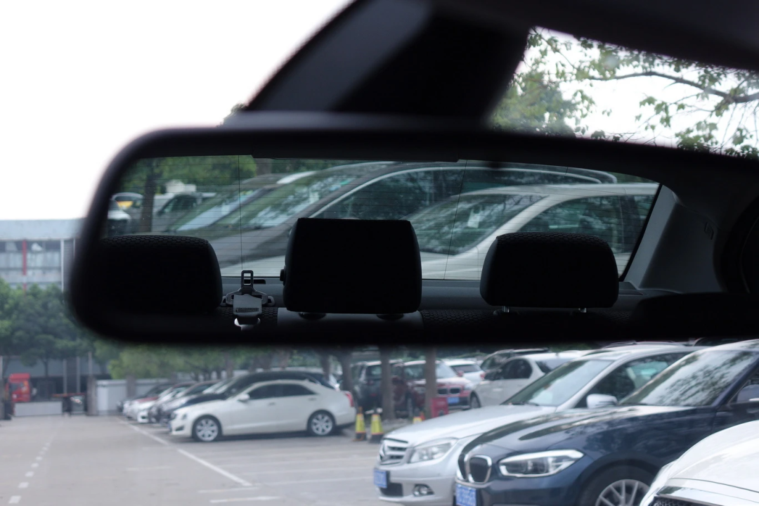 后视镜中的后排中间头枕挡住了大部分视线,介意了一路。