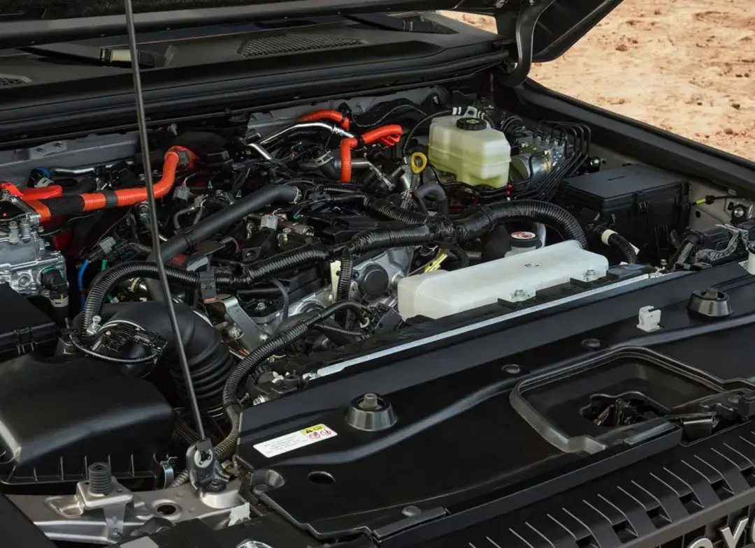 而全新普拉多最重要的改变还是在于动力总成,由老款的4.0L、3.5L自吸汽油发动机,改为了2.4T涡轮增压发动机+单电机的HEV混动系统。不过和基于行星齿轮结构的THS混动系统不同,新普拉多用的是一台更侧重动力输出的8AT变速箱。