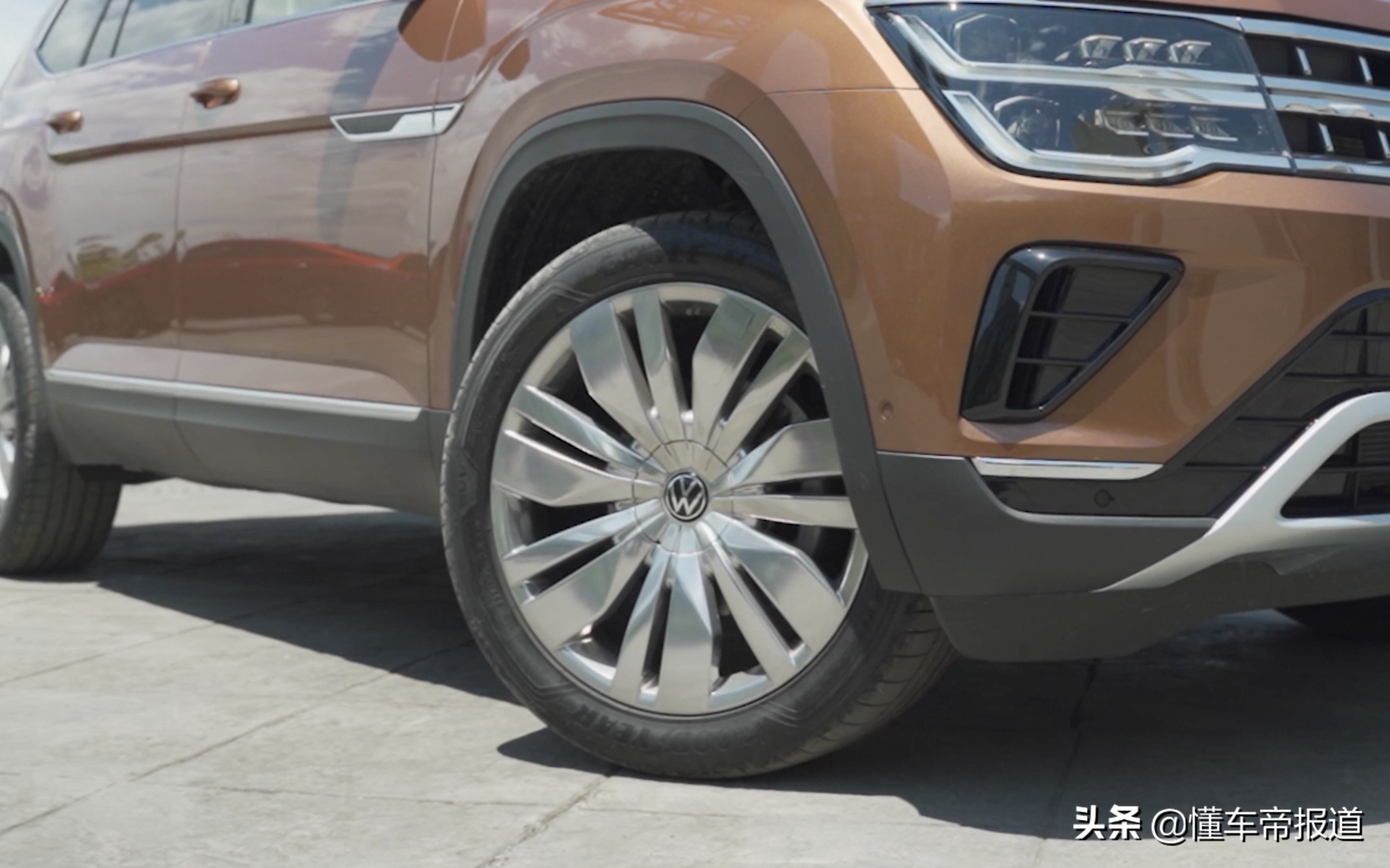 这台全新途昂使用21英寸轮圈,轮辋封闭面积更大,造型也更加扁平化,整车的侧面轮廓没有明显变化,尺寸方面除了长度增加13毫米,其他尺寸均保持不变。
