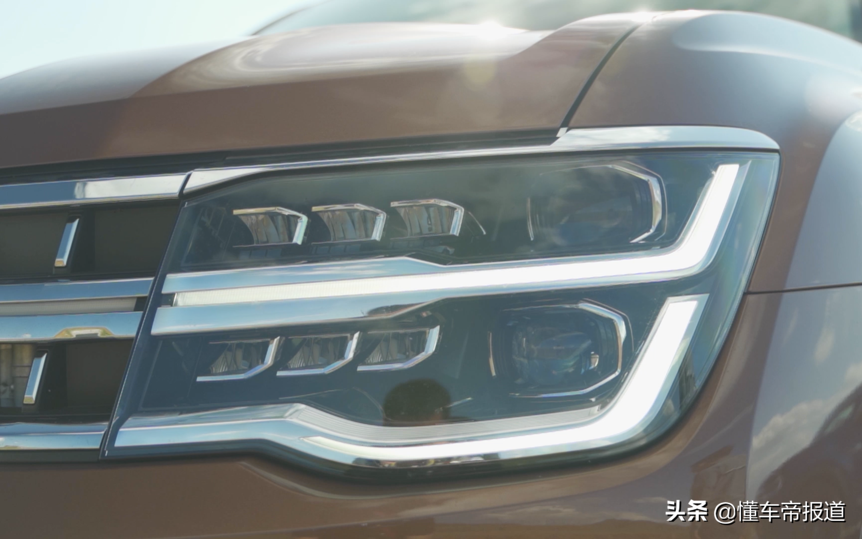 大灯组变为上下两层的全LED矩阵式大灯,带有高度自动调节、随动转向,智能远近光灯功能。