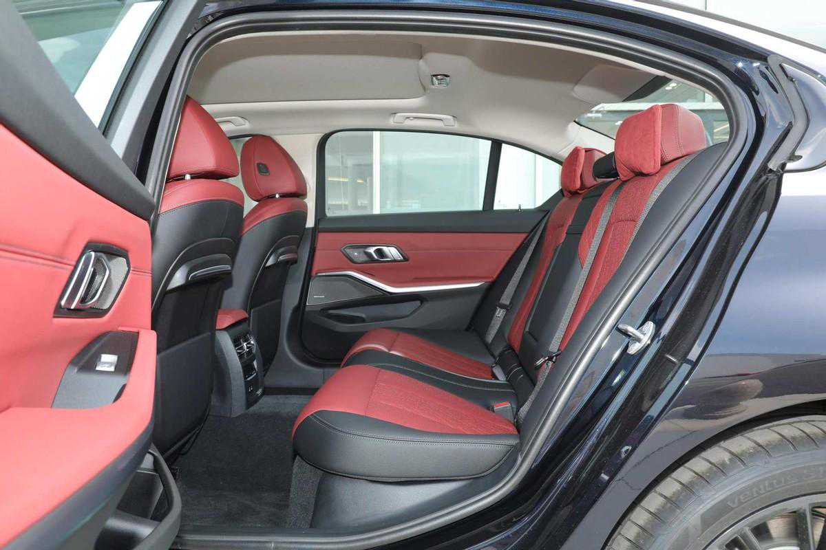 空间方面表现在同级属于主流水准,毕竟长轴版3系的轴距还是在同级有一定亮点,再加上座椅本身也足够用心。以此次试驾感受来看,前排座椅虽说是红黑拼接,但造型并不显运动,支撑性和包裹性符合预期,优点是坐垫较为宽大,挺适合身材较壮的男性。而后排座椅应该是惊喜,通过加长坐垫来提升腿部支撑,配合舒适头枕也营造出高端车型才有的舒适感,在同级少见。配合随随便便两拳以上的腿部空间,一般家庭出行是足够了。