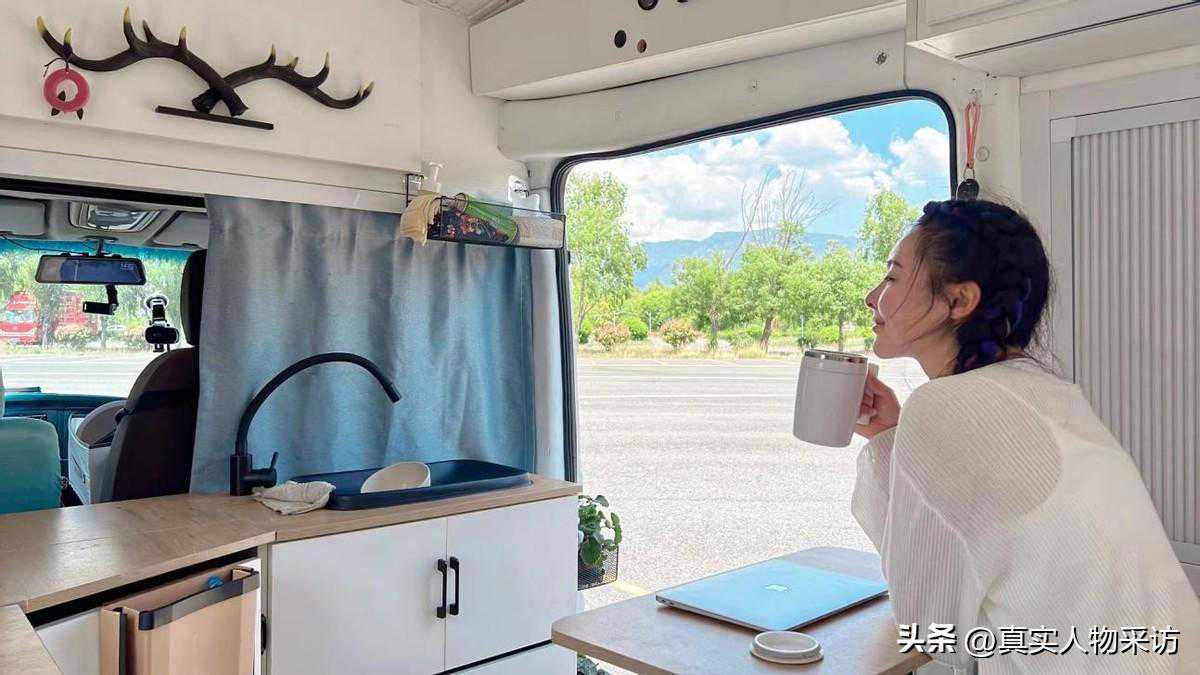 当时一个朋友正好要处理他的不知道几手的老面包车,我花几千块钱买下来,改成了一辆简易的房车。能满足我在车上的吃喝睡就行了。