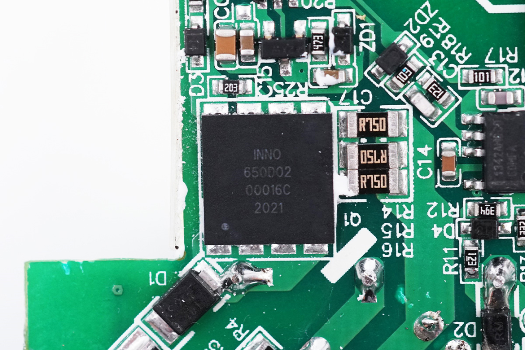 2021上半年,英诺赛科重点布局了33W氮化镓快充产品,推出高性价比氮化镓功率器INN650DA04。英诺赛科33W氮化镓快充方案在体积方面已有了巨大突破,PCB尺寸仅为26mm*26mm*26mm,功率密度可达1.88W/cm³,该功率器件也获得了广大快充电源青睐,出货量稳步增长。