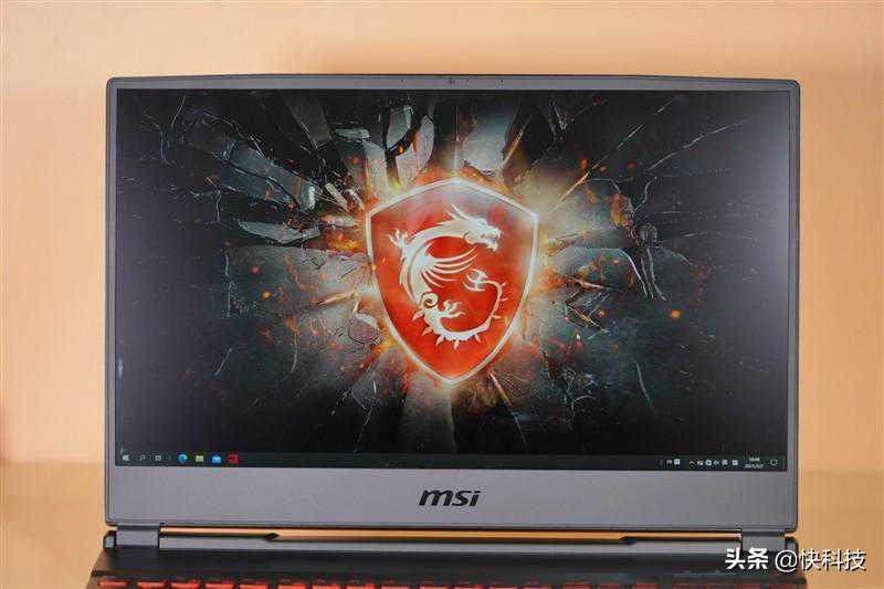 微星冲锋坦克2GL65的A面设计在游戏本中很常见,两道凸起外加中间的发光龙标,辨识度很高。