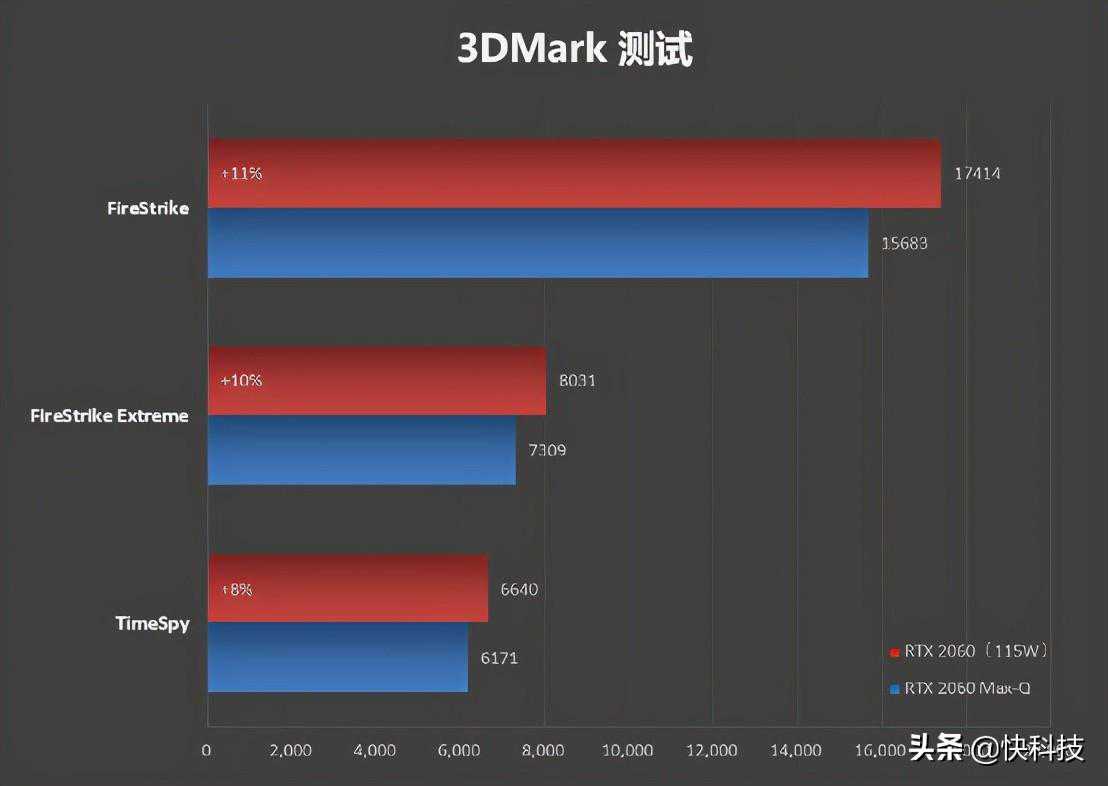 仅仅从跑分来看,在1080P分辨率下,满血RTX2060和RTX2060残血版的差距就达到了10%左右。这也是绝大多数笔记本内屏所选择的分辨率。