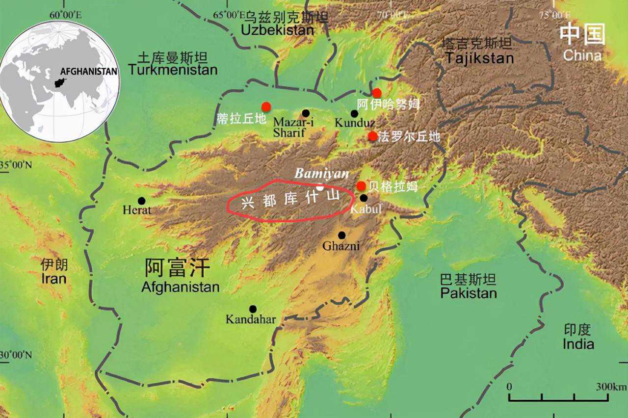 兴都库什山地理位置示意图