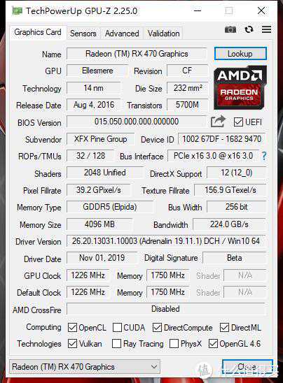 ¥309元的RX470是可以刷讯景RS570BIOS的,这个以前已经做过教程了,再加上接口全、双BIOS,整体来说还是有可玩性的;