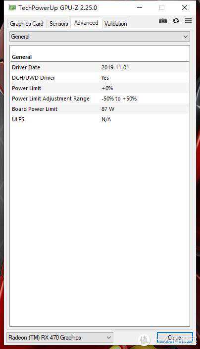 BordPowerLimit:87W,这个功耗墙是个大坎儿~一般RX470跑分低的原因也在这里