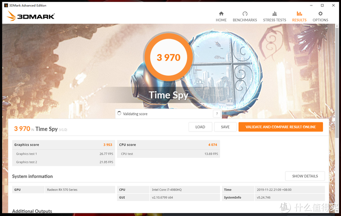 TimeSpy得分3970,显卡得分3953
