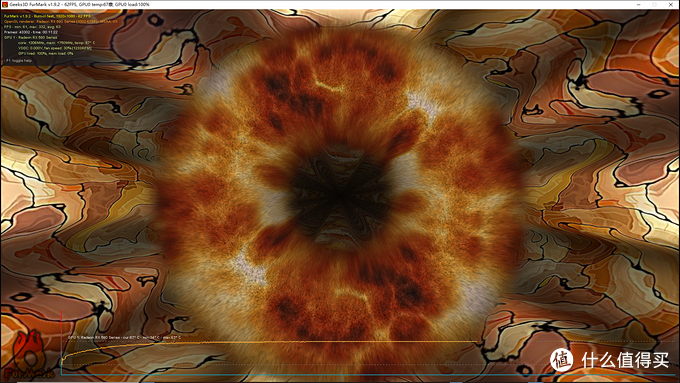 Furmark甜甜圈1920x1080分辨率10分钟温度压力测试(公认的温度烤机测试)。