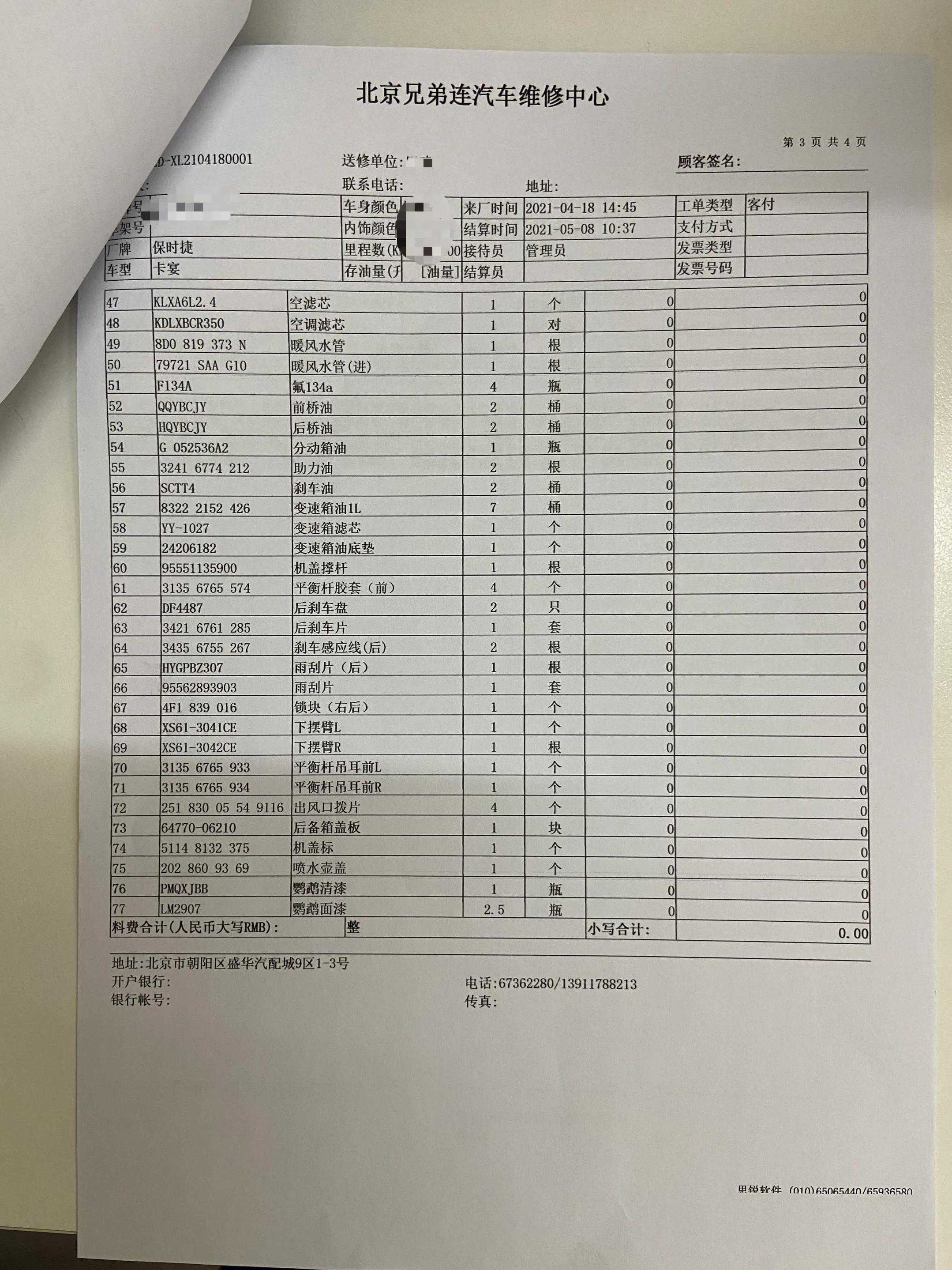 这五页的清单基本就是我这次整备的全部项目了。但这里边不包括座椅内饰的真皮包裹,轮胎轮毂。(这两项都是单独付给别人的)最后所有的花费我会合计列出。