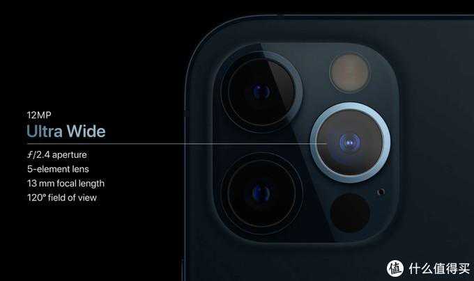 此外,iPhone12ProMax的广角镜头也有重大升级,不仅光圈增大到f/1.6,而且感光元件尺寸也增大47%,像素尺寸增大至1.7微米,使得这枚广角镜头在暗光环境下的表现更佳突出,最多有着87%的拍摄性能升级。镜头的位置也有所不同,最右的是超广角镜头,iPhone12Pro左上是广角,左下是长焦,而iPhone12ProMax相反。