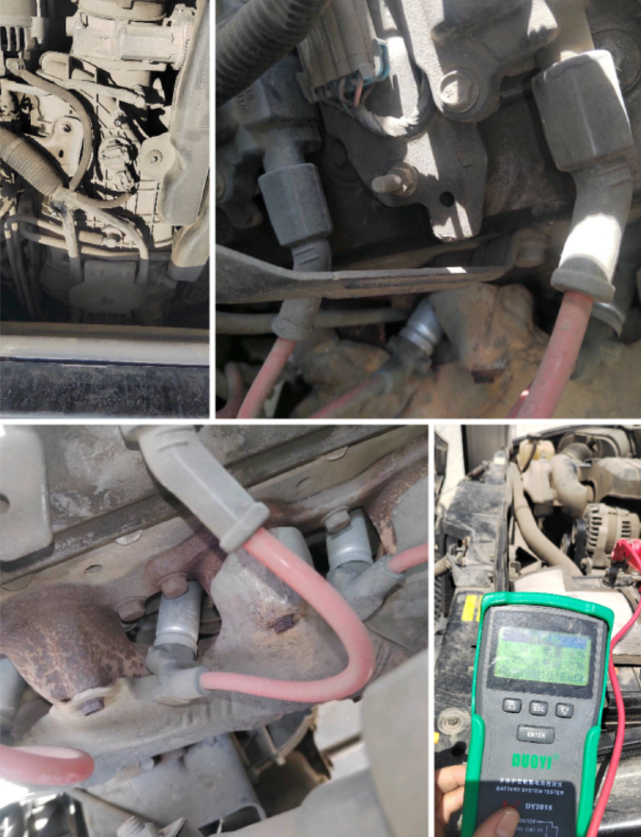 检查发动机细节,可以看到各个附件基本均无拆卸维修痕迹,就是管路老化气门室盖有点漏油,电瓶电量不足需更换,毕竟年限在那里也正常。