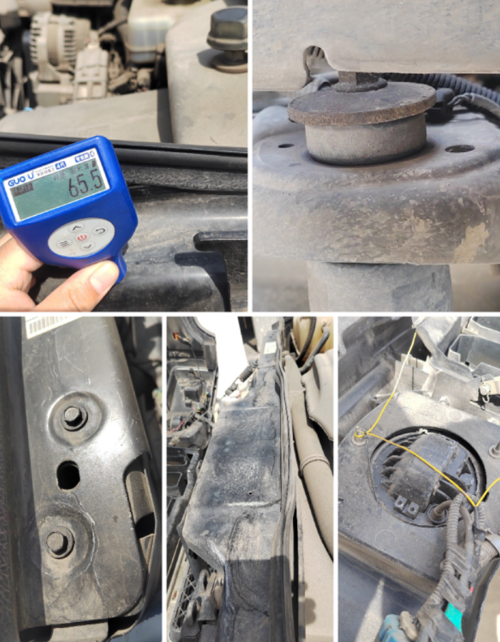 老规矩首先先看一下这辆车的前面,水箱框架无拆卸变形修复有点瑕疵,大灯更换改装的LED,减震器底座无变形修复的痕迹,叶子板骨架也正常。