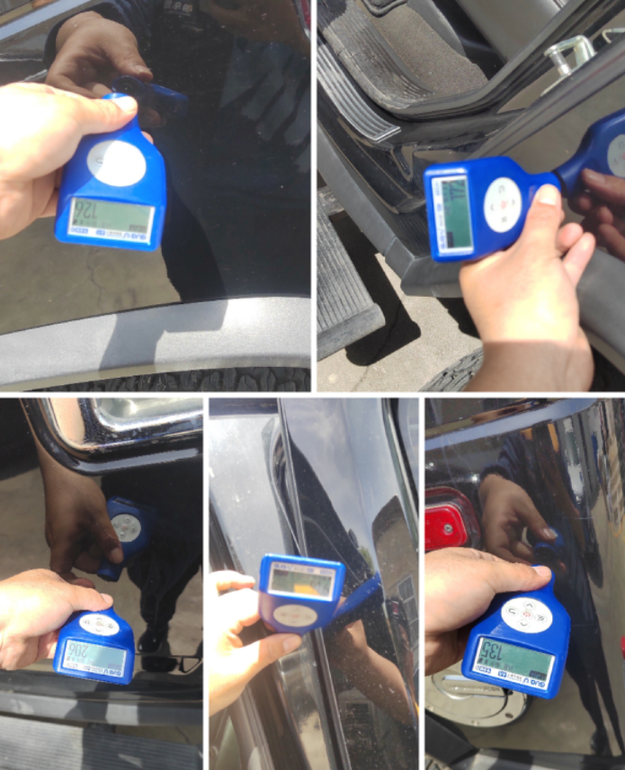 接着检查外观其它漆面,发现左后门喷漆修复,B柱正常无修复变形痕迹,左后叶子板正常无修复,C柱正常无修复。