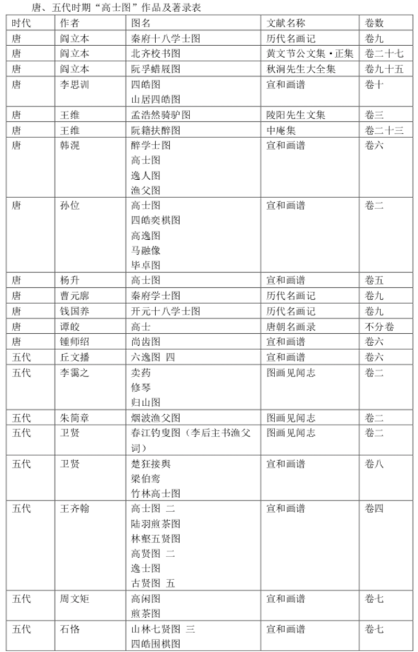 下表所列文献著录魏晋时期“高士图”的主要作品,从中可窥见当时此题材创作情况之一斑。