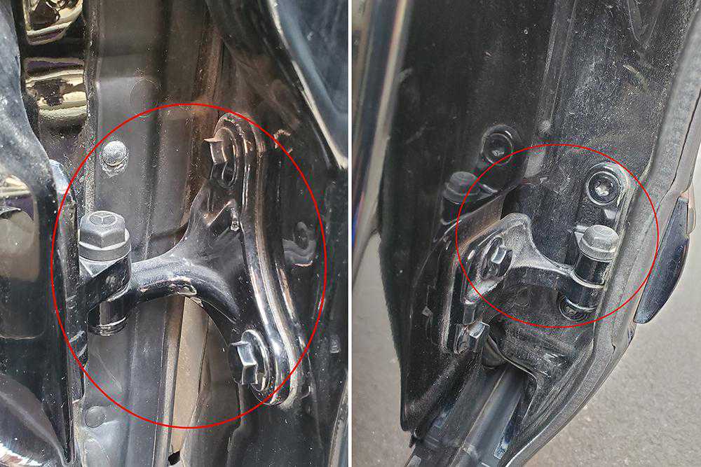 前保险杠固定螺丝,锈成这样谁能告诉我这是动没动过,不过看缝隙也知道是动过的了,暂且认为它是喷漆导致的拆装。