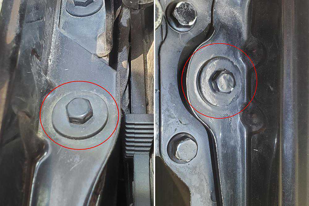 两侧大灯以及机盖锁扣的固定螺丝,锈成这样不知道动没动过。