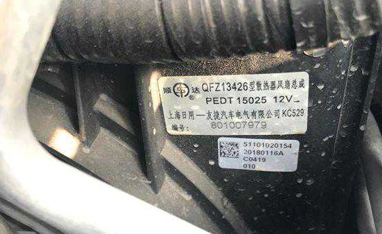 发现昂克赛拉原厂的水箱风扇品牌就是来自于上海日用-友捷,下部的标签上印有生产日期,各位客官老爷们在看车的时候着重注意一下。