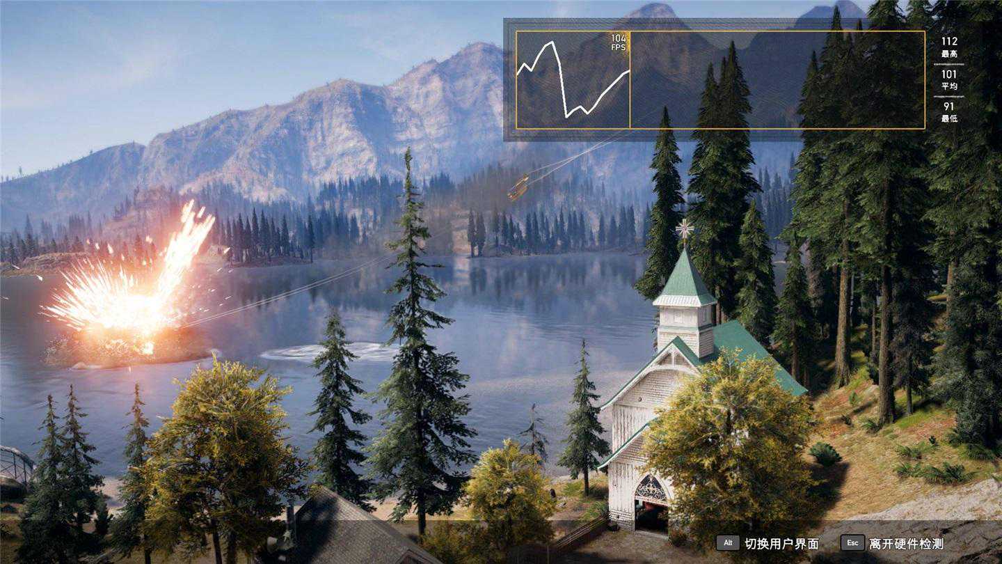 首先是《孤岛惊魂5》,在默认画质下,利用游戏自带的硬件测试功能,冲锋坦克2GL65平均帧率达到了100fps,这个成绩非常不错,能够带来顺畅的游戏体验。