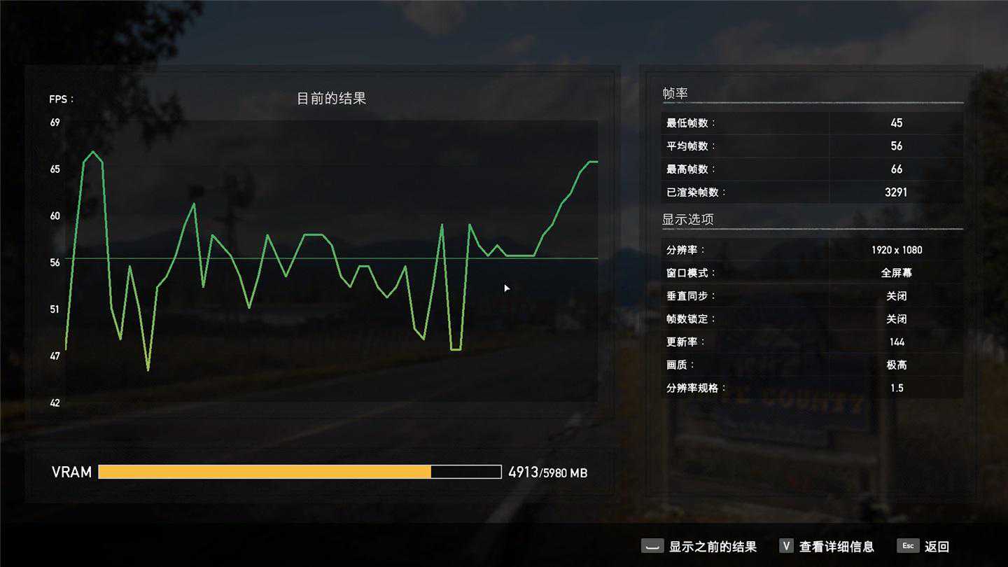 随后我们手动将画质调为最高,可以看到在这种情况下,冲锋坦克2GL65的平均帧率仍超过50FPS,达到了56fps。