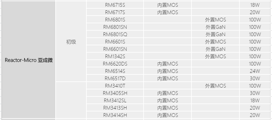 在USBPD快充领域,亚成微致力于为客户提供高功率密度快充解决方案,目前已推出了采用新一代PWM控制技术(自供电双绕组架构)的初级主控芯片RM6715S、RM6717S以及内置coolMOS的QR方案RM6514S、RM6517D。同时又配套推出了内置SGTMOS的次级同步整流芯片RM3405SH、RM3412SH和RM3413SH。