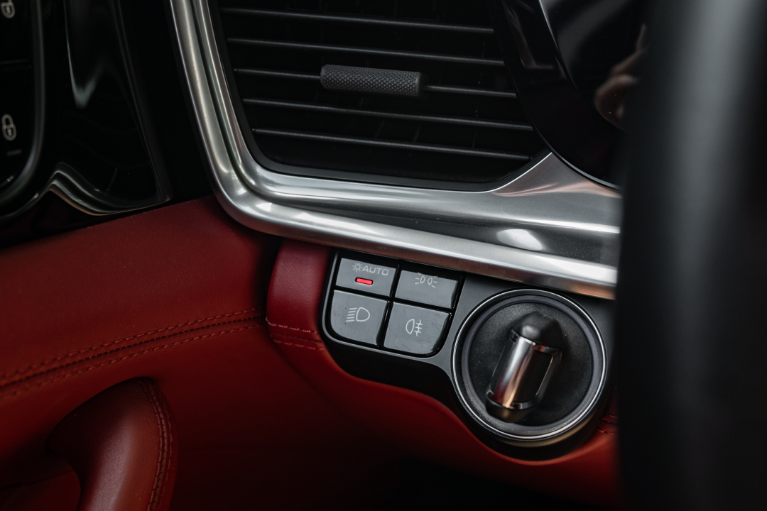 这辆车除了选装了舒适进入之外,还配了14向座椅。座椅不耐用这个特点是奢华品牌独有的,而且确实是越贵的越不耐用。本身这个座椅就偏软,保时捷的这个红色真皮表面又非常细腻,所以稍微有点压痕都显得很明显,6万多公里能保持这个成色,已经不容易了。