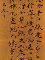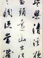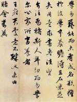 近人研究八大书法,追其师承渊源众说纷纭。或曰宗二王、宗董其昌、宗王宠等等,终如寻其书画师承,至今无一定论一样。据王方宇先生考证,最初,八大山人受欧阳询的影响很深,稍后学董其昌的行草,又转入黄庭坚的夸张开阔等,多方探索,再追寻魏晋人书法的气质,终于参用篆书笔法,形成自己独特的风格:中锋圆润,又婉约多姿且厚重浑成,富有晋人气度。