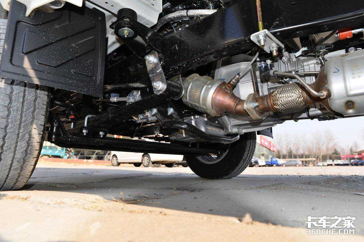 底盘配置方面,驭菱VQ1也使用了独立的车架大梁,前后均为钢板弹簧悬架,板簧片数为前3后5,后双胎的规格为175R14LT8PR,整体的底盘配置表现十分良好。