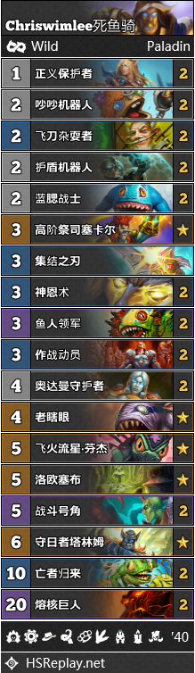 死鱼骑在沉寂许久之后,又一次成为了聚光灯下的焦点。死鱼骑不擅应对大哥牧和奇数骑,而面对偶数术时也讨不到太多便宜。不过,凭借着在优势对局之中所表现出的压倒性战力,死鱼骑还是空降到了T1前列。T4COTASTIC使用一套加入了塞卡尔和红石头的死鱼骑构筑成功登顶,而许多其他玩家照搬这一思路也取得了成功。我们也搬运了Chriswimlee的死鱼骑构筑,这其中使用奥达曼守护者替换掉了常见的王者祝福。这样的改动能够更好的针对偶数萨和大哥牧。