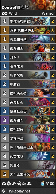 不过,小吼同志也不必因此灰心丧气,因为宝藏就潜藏在那片蔚蓝大海的深处。抄起小斧子,加入我们海盗战的行列吧!海盗战在对阵如今大热的海君贼时拥有稳健的胜率,而且在面对奇数骑,或者大哥牧和魔块术这样的慢速卡组时也有不俗的表现,因此他的强度目前能够排上T2。只要别碰上那个带红袖章的偶数萨,海盗战永远都是天下第一。