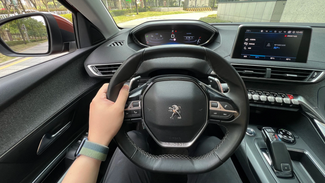 4008的方向盘小巧、粗壮,握感很好,打起来也很灵便。另外标致这个i-Cockpit座舱很有科技感,全液晶的仪表、独特造型的挡杆和中控一排悬浮按键,确实有点未来飞行器的意思。