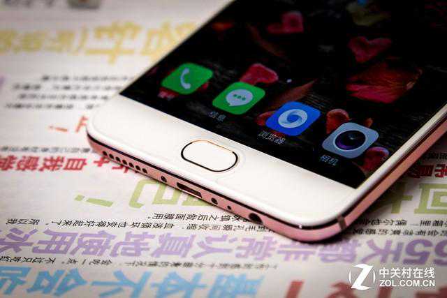 不同于去年R7系列当中仅有Plus具备指纹识别功能的设定,OPPOR9此次自带前置的指纹识别传感器,由于与HOME键结合到了一起,因此使用习惯上也更自然省事;而且HOME键两侧也自然的加入了触控按键,相比OPPOR7来说无形当中增加了些许屏幕可用空间。